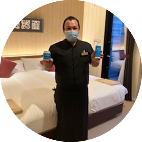 Nipura Protectorの液体タイプは当館への入退室時の手指消毒として、Nipura Protector ジェルタイプは浴室の空間除菌・消臭として、使用しており、お客様に大変ご好評をいただいております。